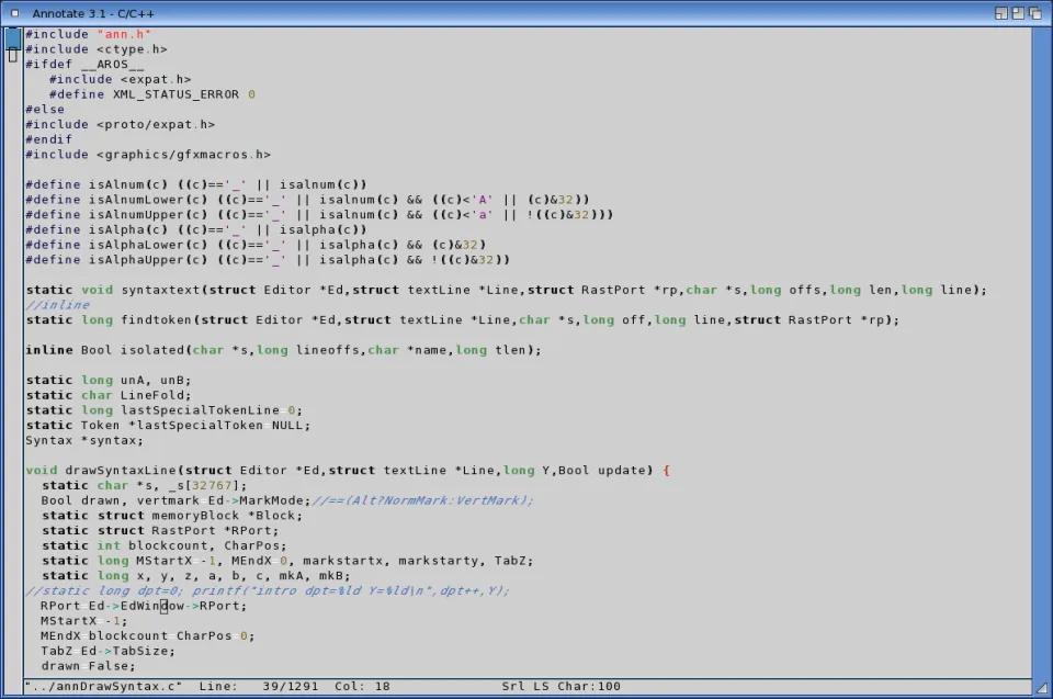 A comprehensive text editor written for AmigaOS 2.0 and up. Features Author: Doug Bakewell Annotate has been released under the GNU GPL by request of the original author Doug Bakewell. See separate GPL.txt. The source is in a separate archive. Developer