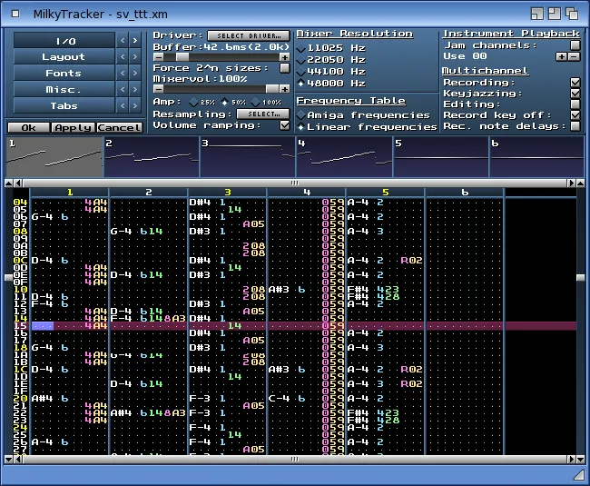 - In-depth instrument editor featuring envelope zooming and scaling and support for copying and swapping instruments and samples across tabs