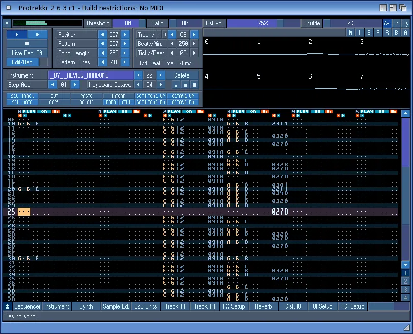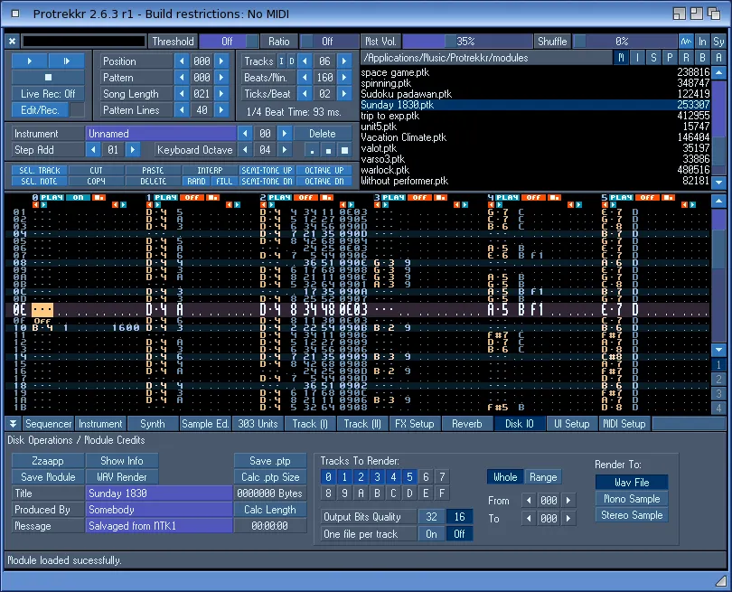 Protrekkr is a powerful tracker program combining software synthesis with traditional samples. It can (mainly) be used to create electronic music such as psytrance, trance goa, hard acid, IDM, techno, jungle etc. Being able to produce chip music also makes Protrekkr suitable for small-sized intros, demos or games. The program is a heavily modified version of the old NoiseTrekker 2, written by Juan Antonio Arguelles Rius aka Arguru. The tracker is available for several operating systems: Windows, Linux, MacOS X, FreeBSD, NetBSD, AmigaOS4, AROS & Haiku. This is Release 1 of the AmigaOS4 port based on the official Protrekkr 2.6.3 sources and on the previous port (of version 2.5.5) by Fredrik Wikström. |