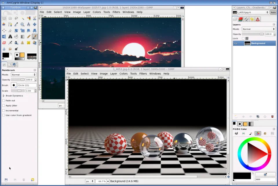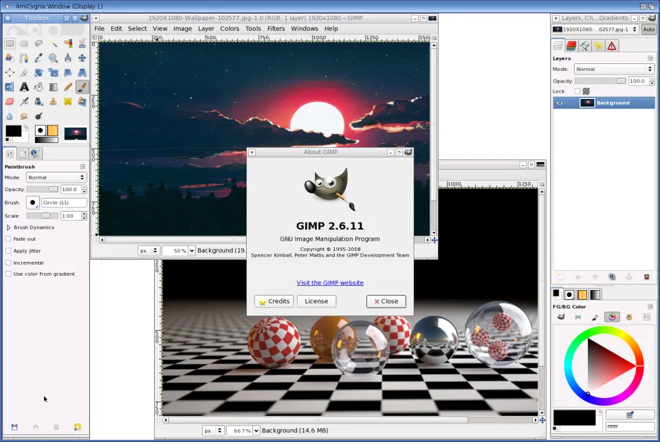 GIMP is an acronym for GNU Image Manipulation Program. It is a freely distributed program for such tasks as photo retouching, image composition and image authoring. It has many capabilities. It can be used as a simple paint program, an expert quality photo retouching program, an image format converter, etc. GIMP is expandable and extensible. It is designed to be augmented with plug-ins and extensions to do just about anything. Requires Amicygnix |